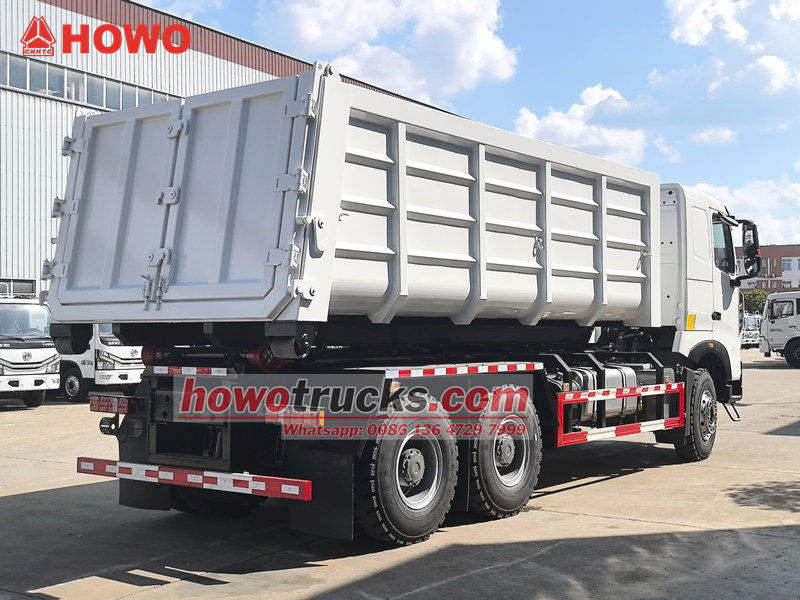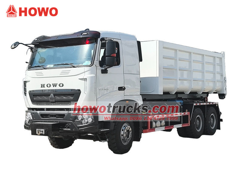 ●Главное преимущество 20-тонного погрузчика HOWO с крюковым подъемником — это его конструкция, позволяющая использовать несколько мусорных контейнеров на одном транспортном средстве.