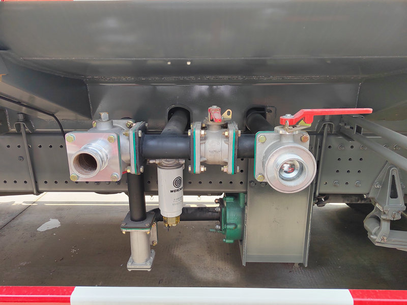 В нижней передней части автомобиля расположена передняя форсунка, распыляющая воду веером для эффективного смывания пыли и осадка с дорожного покрытия. В задней части автомобиля установлена ​​система заднего распыления, равномерно распределяющая воду по дорожному покрытию для уменьшения пыли и поддержания влажности. Дождеватели с обеих сторон орошают придорожные зеленые зоны, а расположенные высоко дождеватели подходят для полива высоких деревьев и растений.