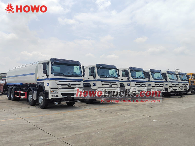 Водовоз Sinotruk HOWO 8x4 вместимостью 25 000 литров — это специализированное транспортное средство, используемое для распыления водяной пыли или мытья дорог, площадей, садов и строительных площадок. Он состоит в основном из резервуара для воды, насоса для полива, системы распыления и устройства управления. Его можно использовать для различных целей, включая подавление пыли, охлаждение, озеленение и аварийное тушение пожаров.Он Водовоз HOWO 8x4 Оснащен передним, задним, боковым распылением и водяной пушкой высокого давления, что обеспечивает разнообразные методы распыления и широкую зону охвата. Функция самовсасывания и самослива облегчает сбор воды, что делает машину подходящей для различных условий эксплуатации, включая городскую санитарию, уход за садом и борьбу с пылью на строительных площадках.  Водовоз HOWO 8x4 работает следующим образом: Грузовик состоит из шасси, бака, водяного насоса, вала отбора мощности (ВОМ), системы трубопроводов и распылительного устройства.●Во время работы двигатель через вал отбора мощности приводит в движение водяной насос, который забирает воду из бака и подает ее по трубам в различные точки распыления.●В нижней передней части автомобиля расположена передняя форсунка, распыляющая воду веером для эффективного смывания пыли и осадка с дорожного покрытия. В задней части автомобиля установлена ​​система заднего распыления, равномерно распределяющая воду по дорожному покрытию для уменьшения пыли и поддержания влажности. Дождеватели с обеих сторон орошают придорожные зеленые зоны, а расположенные высоко дождеватели подходят для полива высоких деревьев и растений.●Автоцистерна HOWO оснащена водяной пушкой высокого давления с регулируемым давлением и соплом, что позволяет проводить очистку на больших расстояниях, а также может оказывать помощь при тушении пожаров в чрезвычайных ситуациях.  1. Надежная конструкция и гибкие возможности.Автоцистерна HOWO 8x4 изготовлена ​​из высококачественной углеродистой стали и оснащена внутренними волногасящими перегородками, что повышает ее прочность и эффективно снижает плескание воды, обеспечивая устойчивость и безопасность движения. Емкость цистерны может быть гибко настроена в соответствии с потребностями заказчика: от небольших моделей вместимостью 3 куб. м до крупных автомобилей вместимостью более 40 куб. м, удовлетворяющих потребности в воде для различных операций. Прочное шасси грузовика подходит как для городских, так и для сельских дорог, а также для сложных условий эксплуатации.  2. Различные системы распыленияПоливочная машина HOWO 8x4 оснащена различными распылительными устройствами, включая передние, задние, боковые и верхние спринклеры, что обеспечивает широкий спектр возможностей. Передняя форсунка, расположенная в нижней передней части машины, распыляет воду веером, эффективно смывая грязь, песок и пыль с дорожного покрытия под высоким давлением. Задняя система полива равномерно покрывает дорожное покрытие водой, обеспечивая охлаждающий эффект и снижение запыленности. Боковые форсунки позволяют поливать зеленые зоны по обеим сторонам дороги, а верхний спринклер подходит для полива высоких деревьев и растений. Оснащенная мощной водяной пушкой с большим радиусом действия и регулируемым углом наклона, она не только обеспечивает поли