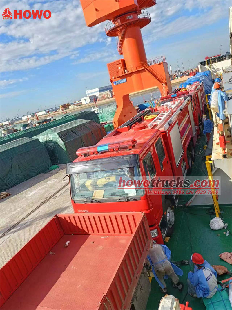 В порту Шанхая были загружены для отправки 4 пожарно-спасательных автомобиля HOWO 6X4 с объемом двигателя 12000 л и системой подачи пены.