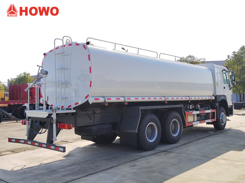 Водовоз HOWO объемом 15 куб. м не только эффективно смывает дорожную пыль и песок благодаря переднему механизму промывки, но и равномерно распределяет водяной туман с помощью заднего разбрызгивателя, уменьшая запыленность и увлажняя дороги.