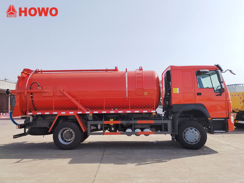 Ассенизационная машина HOWO 4x2 сочетает в себе функции всасывания и транспортировки. Оснащенная мощным вакуумным насосом, она создает огромную силу всасывания, быстро откачивая ил, сточные воды и мусор из канализационных труб, септиков и канализационных колодцев в специальный резервуар.Герметичное уплотнение резервуара предотвращает утечки и вторичное загрязнение. Ассенизационная машина HOWO 4x2 Этот мусоровоз маневренен и может передвигаться по узким улицам. Он широко используется в муниципальной санитарии, жилых домах, на заводах и в других областях, эффективно справляясь со всеми видами отходов и играя важную роль в поддержании чистоты и порядка в окружающей среде.  Основные компоненты ассенизационной машины HOWO 4x2 включают в себя вал отбора мощности (ВОМ), карданный вал, вакуумный насос, напорный бак, гидравлическую систему, трубопроводную сеть, вакуумный манометр, смотровое окно для сбора фекалий и устройство для мытья рук. В ней используется современный вакуумный насос с высокой мощностью всасывания и большим диапазоном всасывания, что делает ее особенно подходящей для откачки, загрузки и выгрузки ила из канализации. Компактная круглая конструкция бака позволяет ей выдерживать более высокое давление и обеспечивать большую мощность всасывания.  1. Профессионализм и эффективностьГлавное преимущество вакуумного автоцистерны HOWO заключается в ее специализированной конструкции, позволяющей быстро обрабатывать осадок, сточные воды и ил. Оснащенная мощным вакуумным насосом, она обладает исключительно высокой эффективностью всасывания, обычно заполняя резервуар всего за 5 минут, с дальностью всасывания до 8 метров, что значительно повышает эффективность работы. Такая высокая производительность позволяет быстро выполнять задачи, сокращая трудозатраты, при внезапном засорении или крупномасштабных операциях по очистке от ила.  2. Удобство в эксплуатации и высокая адаптивность.Продуманная система управления позволяет водителю легко осваивать различные функции. Кроме того, вакуумный автоцистерна HOWO обладает высокой адаптивностью к различным условиям эксплуатации, обеспечивая надежную работу на городских дорогах, в сельской местности и даже на сложных и узких площадках строительства трубопроводов. Широкий спектр адаптивности позволяет удовлетворять потребности различных регионов и условий работы.  3. Безопасность, надежность и долговечностьАвтоцистерна для откачки сточных вод HOWO 4x2 изготовлена ​​из высококачественной стали с использованием передовых технологий герметизации, что обеспечивает герметичность и стабильность конструкции. Прочный и долговечный корпус цистерны не только эффективно предотвращает протечки, но и продлевает срок службы машины. В то же время, машина обладает хорошей устойчивостью и безопасностью во время работы, обеспечивая безопасность операторов и рабочей среды, а также надежную опору для длительных и интенсивных работ.