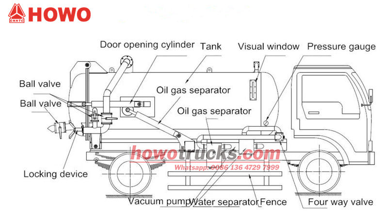 ♦Надстройка вакуумного автоцистерны использует вакуумный насос для создания сильного отрицательного давления внутри резервуара, всасывая жидкие или полужидкие отходы, такие как сточные воды, осадок и фекалии, в резервуар для хранения. Это мощное всасывание обеспечивает эффективную работу.