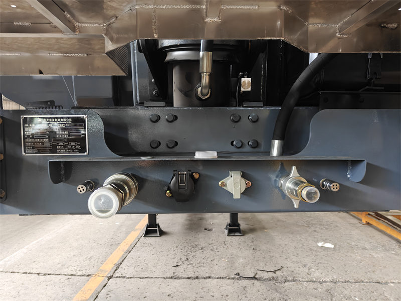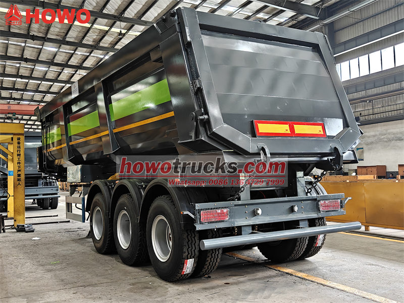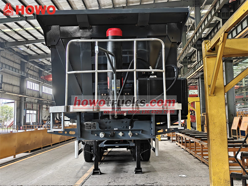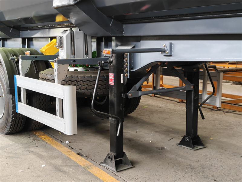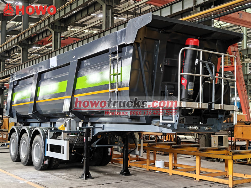 Theновый 3 ось 40 тоннсамосвал Кузов прицепа изготовлен из стали Q370R, рассчитанной на давление 1,61 МПа и толщину листа 12-16 мм. Оснащен гидравлической системой HYVA и манометром, что обеспечивает безопасность во время эксплуатации. Такие элементы, как мостик BPW, шкворни JOST и опоры JOST, отвечают требованиям транспортировки в различных условиях и на разных дорогах.