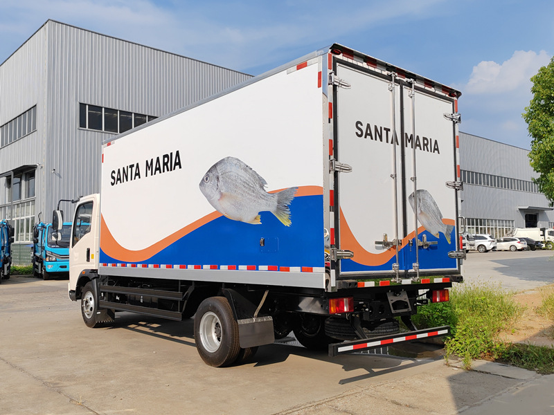◇Полноразмерные двойные двери в задней части облегчают доступ для вилочного погрузчика, повышая эффективность погрузки и разгрузки. • Грузоподъемность: вмещает 5 тонн морепродуктов, подходит для перевозки насыпных грузов в рыболовецких портах, на оптовых рынках и в других местах.