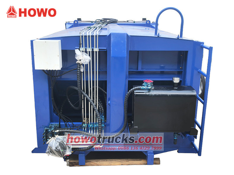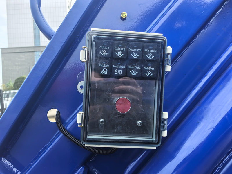 Блок управления в кабине позволяет контролировать погрузку и разгрузку, а также выбирать режим работы (например, автоматический или ручной), а блок управления в задней части машины контролирует работу механизма прессования и наполнения, а также механизма поворота бочек. Это очень удобно в использовании и эксплуатации. Особенно на полигонах твердых бытовых отходов операторы могут выполнять разгрузку и сброс сточных вод, не выходя из машины. В соответствии с требованиями пользователя могут быть установлены проводные устройства дистанционного управления.