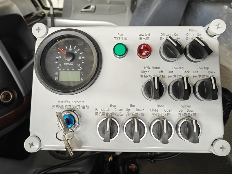 Интеллектуальная электронная система управления объединяет два блока управления в кабине и рядом с присосками, обеспечивая управление такими функциями, как подъем и опускание щеток, опорожнение бака, а также запуск и остановка воздуходувки, одним нажатием кнопки, что гарантирует удобную и эффективную работу. Данная машина имеет модульную интегрированную конструкцию, объединяющую силовую систему, систему подметания, систему водоснабжения и интеллектуальную систему управления для достижения эффективной, энергосберегающей и экологически безопасной работы.