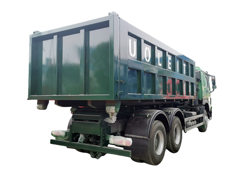 Мусоровоз с откидным кузовом (также известный как мусоровоз с крюковым подъемником или мусоровоз с крюковым погрузчиком) — это специализированное санитарное транспортное средство, использующее гидравлическую систему для автоматической загрузки и разгрузки контейнеров. Он в основном используется для сбора и транспортировки отходов в муниципальных санитарных службах, управлении недвижимостью, а также на промышленных и горнодобывающих предприятиях. Транспортное средство в основном состоит из шасси, механизма крюкового подъемника и мусорных контейнеров.