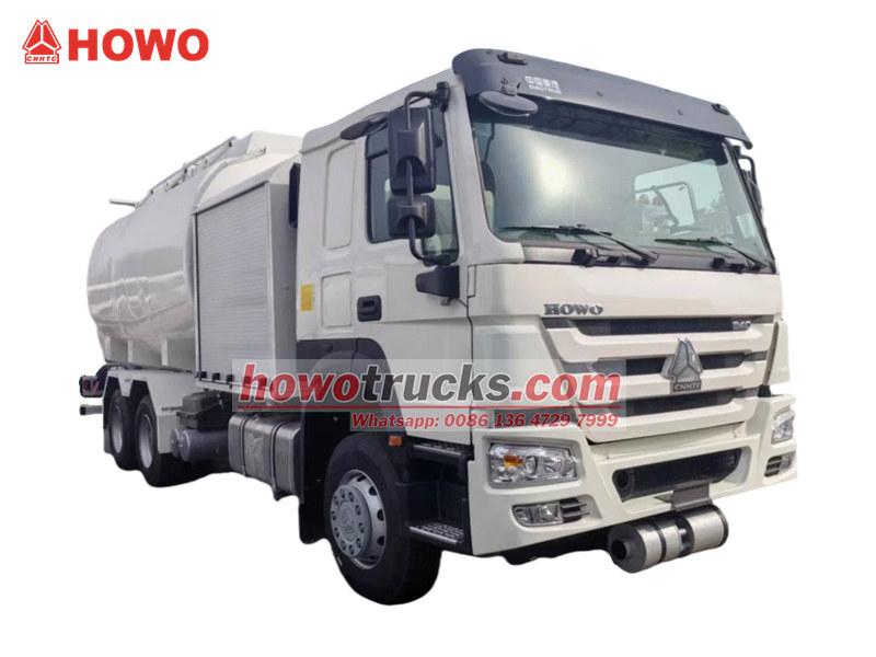 16000×2Самоходная заправка для самолетов HOWO 20000L — это специализированная машина наземного обслуживания авиации, построенная на усиленном шасси HOWO 6×4. Она оснащена двигателем Weichai мощностью 400 л.с. и 10-ступенчатой коробкой передач, что обеспечивает стабильную грузоподъемность и маневренность. Верхняя часть кузова включает в себя топливный бак из алюминиевого сплава объемом 20 кубических метров, оснащенный самовсасывающим центробежным насосом производительностью 1200-1500 л/мин, системой фильтрации и сепарации с порами 5 микрон, а также двухрежимной системой заправки (заправка под давлением с помощью гидравлического шланга DN63 и самотечная заправка с помощью топливной форсунки DN38), что обеспечивает эффективную подачу авиационного топлива. Машина оснащена системой аварийного отключения, клапанами регулирования давления и магнитным программатором заправки, обеспечивающим полную безопасность процесса благодаря авиационным стабилизированным муфтам, интерфейсам улавливания паров топлива и взрывозащищенному электрооборудованию.