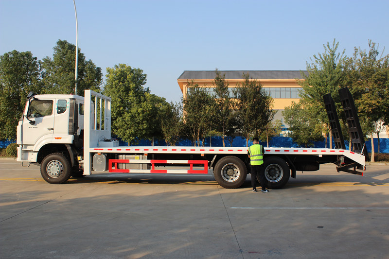 Надстройка является основной функциональной частью этого сооружения. Самопогрузчик HOWO с бортовой платформойПлатформа имеет размеры 8600 × 2500 мм и может гидравлически выдвигаться на ширину 3 метра. Она изготовлена из 10-миллиметровой стальной пластины с противоскользящим покрытием и высокопрочной стали, что обеспечивает долговечность и надежность. Транспортное средство также оснащено 25-тонной передней гидравлической телескопической опорой, 8-тонной гидравлической лебедкой с 20-метровым стальным тросом и 2 гидравлическими пандусами, что значительно повышает устойчивость и удобство погрузки и разгрузки крупногабаритной техники. Широко используется на различных строительных площадках, в горнодобывающих районах и на объектах, где эксплуатируется крупная техника.