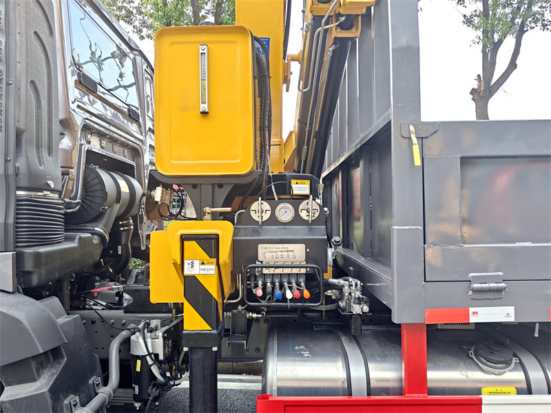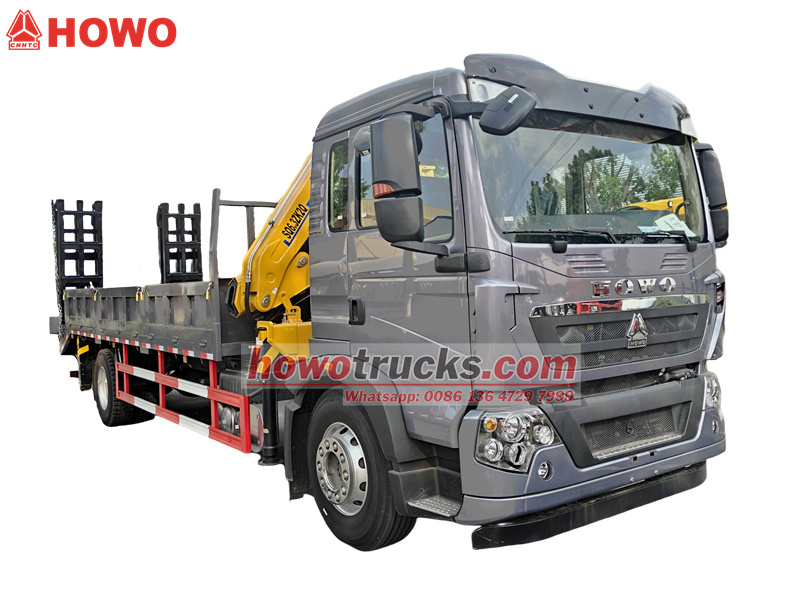 ♦ Грузовой автомобиль Howo 4x2 оснащен 6-тонным шарнирно-сочлененным краном (крутящий момент 10 тонн/высота 8,6 м) и функцией перевозки грузов на платформе грузоподъемностью 20 тонн..