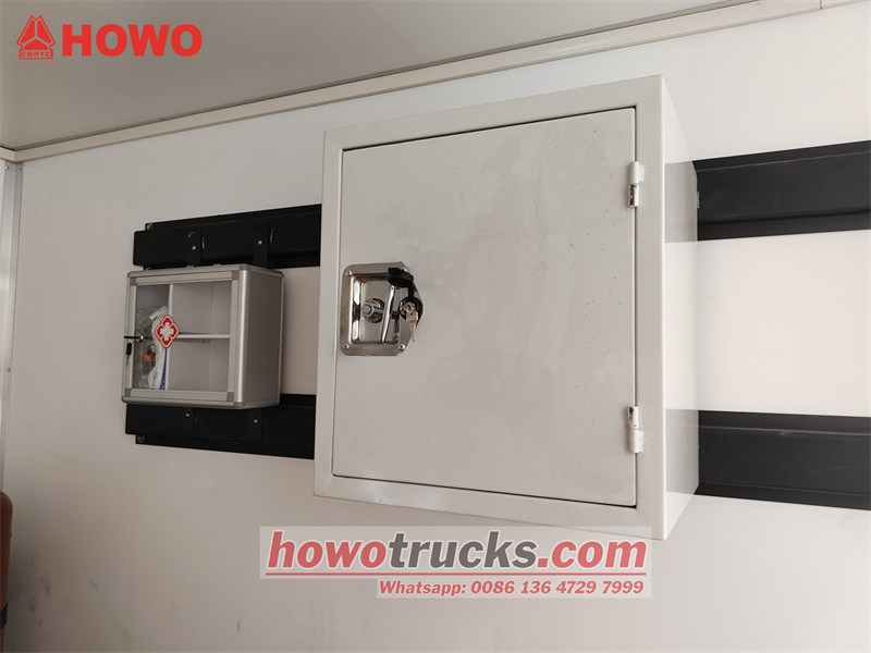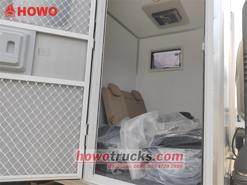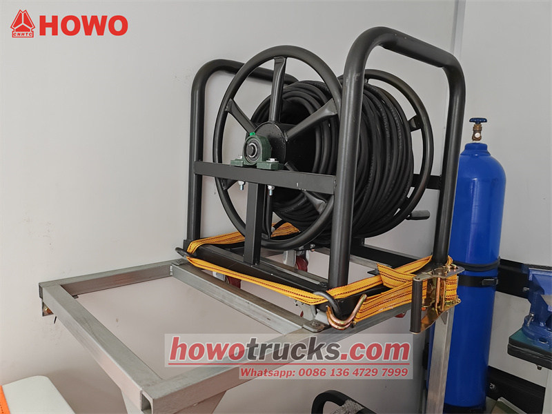 Аварийно-ремонтный автомобиль HOWO 4x4 создан на базе шасси легкого грузовика HOWO M3 1880. Он имеет колесную базу 3000 мм и оснащен двигателем WP2.3Q140E62 мощностью 140 л.с. и 8-ступенчатой коробкой передач WLY8GS46. В передней части автомобиля расположена зона отдыха с диваном и несколькими складными стульями. Задний отсек оборудован ремонтным оборудованием, включая японский бесшумный дизельный генератор Osawa Power, портативный ручной водяной насос, кислородный баллон, верстак с четырьмя ящиками, два ящика для инструментов, настольный шлифовальный станок и гидравлический сварочный аппарат для стыковой сварки полиэтилена высокой плотности HDC315.