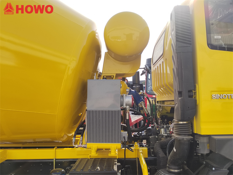 Бетоносмеситель HOWO объемом 5 кубических метров оснащен полуторной кабиной HOWO 2080, имеет общую массу 16 тонн и колесную базу 3800 мм. Он оборудован двигателем SINOTRUK MC05.18-40 мощностью 180 лошадиных сил и 10-ступенчатой коробкой передач HW90510C. Верхний смесительный бак имеет объем 5 кубических метров и изготовлен из марганцевой стали Q355. Толщина корпуса бака составляет 4 мм, а днища — 6 мм. Он оснащен редуктором, гидравлическим насосом и двигателем, радиатором, блоком управления подачей воздуха, резервуаром для воды емкостью 400 л, системой подачи воды под давлением воздуха, двусторонними рукоятками управления на задней части, рычажным управлением и низким содержанием отходов.