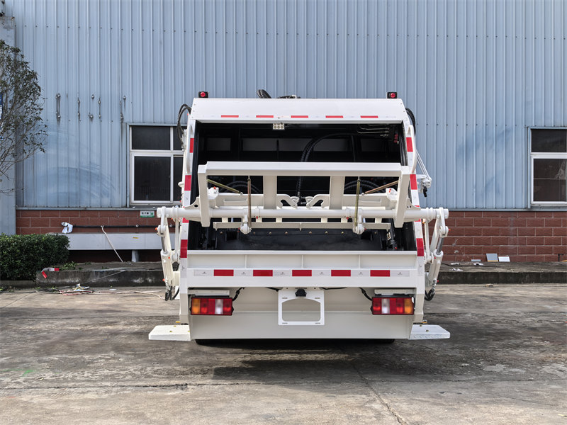 4. Механизм подъема контейнера: Сзади установлен подъемный механизм для перемещения мусорных контейнеров различной вместимости, обеспечивающий автоматическую загрузку и выгрузку.