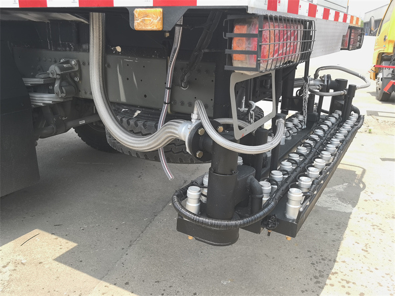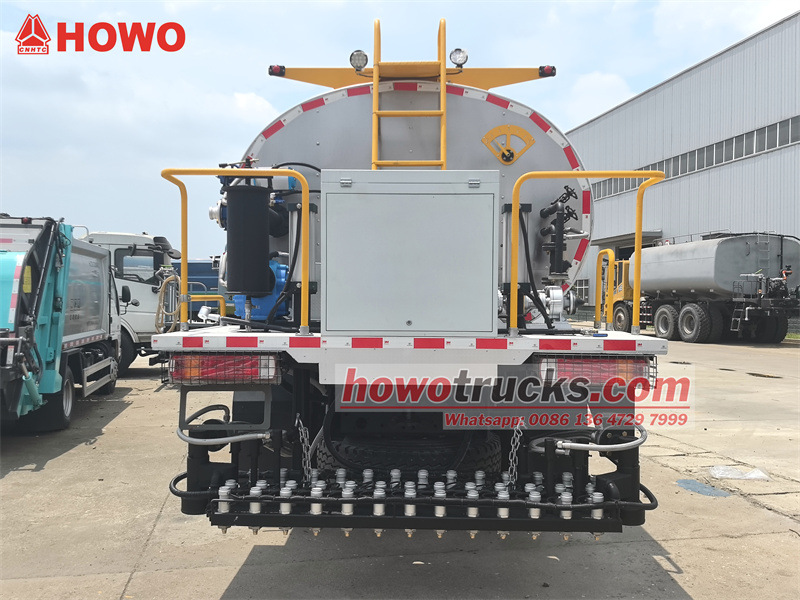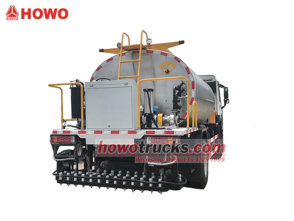 Асфальтораспределитель HOWO 4x2 объемом 8 кубических метров представляет собой модифицированное шасси HOWO HW76 с колесной базой 4600 мм. Он оснащен двигателем WP10.300E22 и коробкой передач HW19710. В верхней части расположен асфальтораспределительный бак объемом 8 кубических метров, оборудованный интеллектуальным асфальтоукладчиком RCB38/0.6-80F, 36 асфальтораспределительными форсунками сзади, шириной распыления 6 м, объемом распыления 0,2-3 кг/м², импортной дизельной горелкой (теплотворная способность: 10×10).⁴ккал/ч), автоматический подогрев термомасла, интеллектуальное компьютерное управление в кабине и вспомогательная генераторная установка.