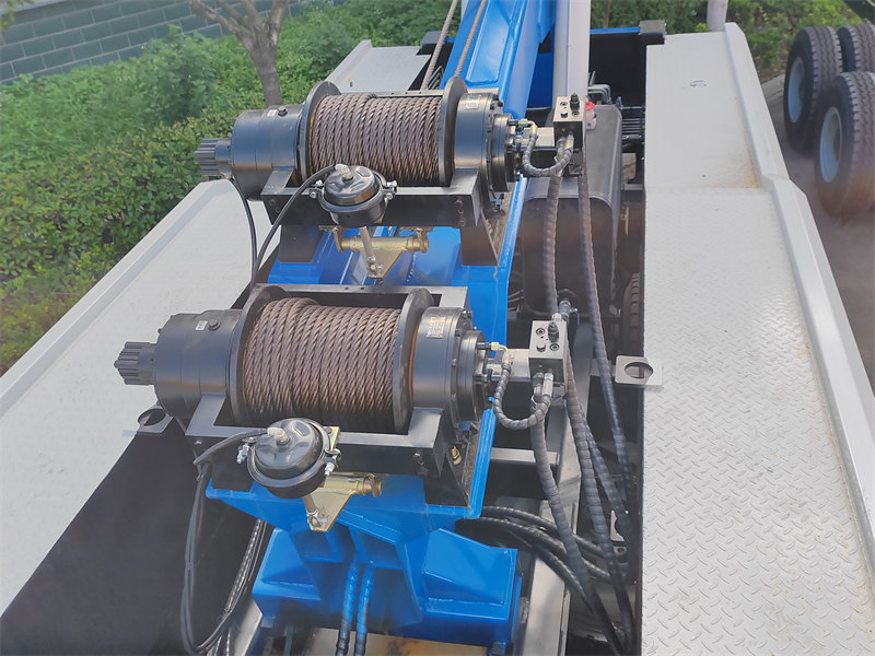 3. Функция лебедки: Мощные эвакуаторы оснащены двумя лебедками. Они работают совместно с основной стрелой и точками крепления на месте (неподвижными блоками) для выполнения различных операций, таких как выравнивание перевернутых транспортных средств и вытаскивание автомобилей, съехавших в глубокие канавы.