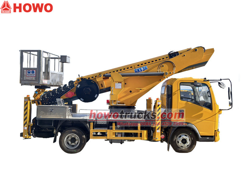 Уникальная конструкция гидравлических опор H-образного типа оснащена двухсторонним гидравлическим блокировочным механизмом для обеспечения устойчивости во время работы. Подъемник Howo также оборудован двойной системой управления: ручным и беспроводным дистанционным управлением, грузоподъемностью платформы 200 кг, гидравлическим вращением на 360° и встроенными многочисленными устройствами защиты, такими как автоматическое ограничение выхода за пределы платформы, аварийная остановка и защита от утечек.