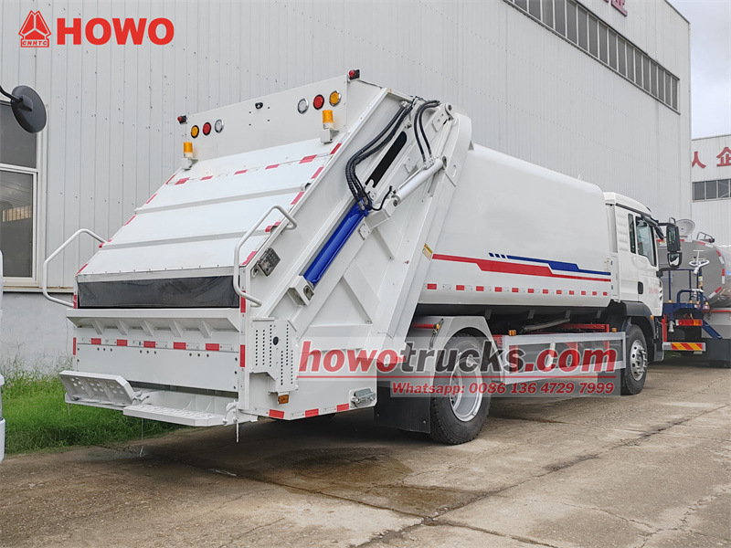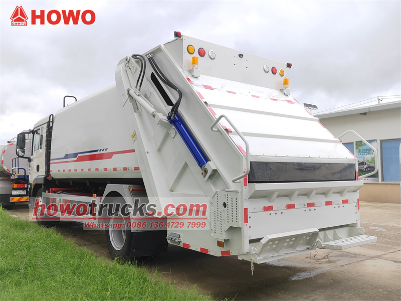 11500Он Мусоровоз HOWO TX объемом 16 куб. м. Этот мусоровоз разработан для эффективной уборки городских санитарных отходов. Он использует шасси Sinotruk HOWO TX, двигатель Sinotruk мощностью 250 лошадиных сил и 8-ступенчатую трансмиссию, обеспечивая высокую мощность и маневренность. Его главное преимущество заключается в большом 16-кубовом контейнере из углеродистой стали. Оснащенный усовершенствованной электронной системой управления CAN-шиной и технологией двунаправленного сжатия (коэффициент сжатия 3,4:1), мусоровоз может за один рейс перевезти количество мусора, эквивалентное четырем-пяти грузовикам обычных мусоровозных контейнеров. Управление удобное, доступны несколько режимов: электронный из кабины, ручной гидравлический и электронный, расположенный сзади.