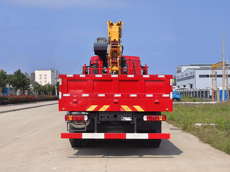 Автомобильный кран HOWO TX 8×4 отличается высокой производительностью, оснащен двигателем Weichai мощностью 350 лошадиных сил и 10-ступенчатой трансмиссией HOWO. Его верхняя часть представляет собой 14-тонный пятисекционный стреловой кран XCMG, обеспечивающий высоту подъема до 21,5 метров и отличные эксплуатационные характеристики. Автомобиль имеет прочную трехслойную раму и оснащен грузовым отсеком из инженерной стали толщиной 3 мм (полностью складной), боковыми и днищевыми пластинами толщиной 5 мм. Он идеально сочетает в себе двойную функцию: подъем тяжелых грузов и эффективную транспортировку, что делает его надежным помощником в различных инженерных работах.