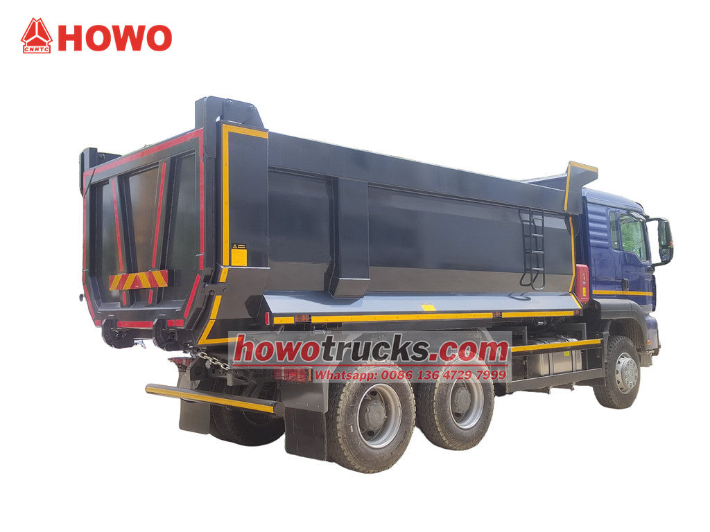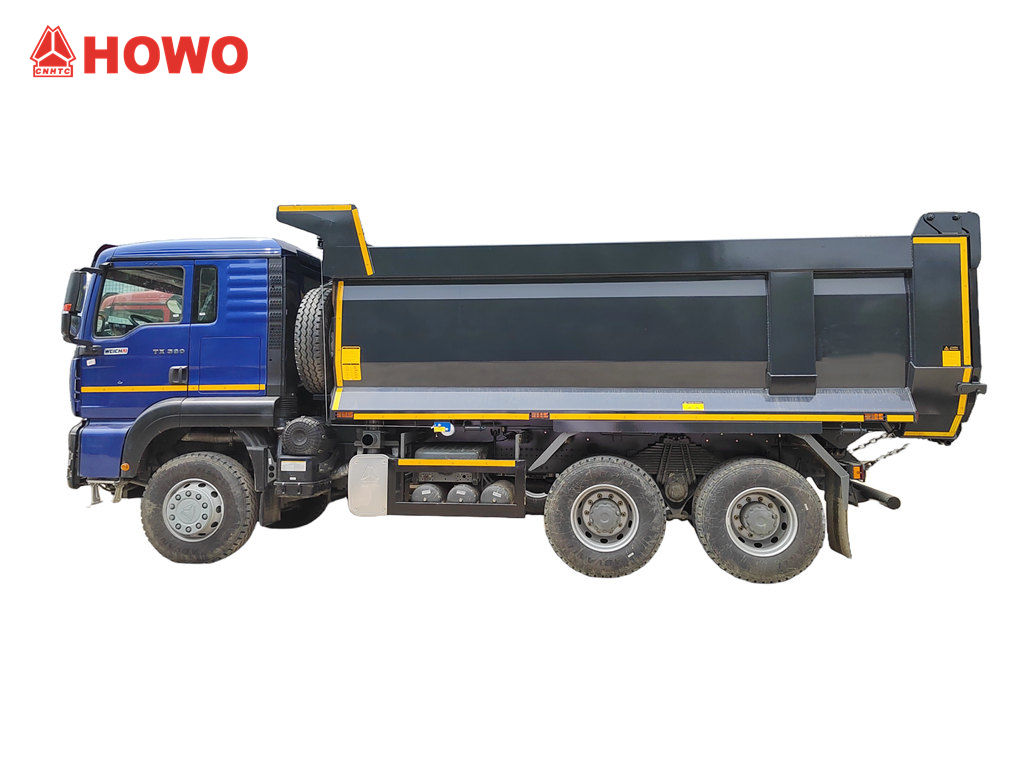 Самосвал HOWO TX Cabin Dump Tipper Truck модифицирован на базе шасси HOWO TX Cabin 6x4 с колесной базой 3200+1400 мм, оснащен дизельным двигателем WP10.380E22 мощностью 380 л.с., трансмиссией HW19710 (10 передач переднего хода, 2 передачи заднего хода) и самосвальным кузовом из углеродистой стали с толщиной боковых стенок 6 мм и толщиной днища 8 мм. 5200x2300x1400 мм, передний верхний подъем, стабильный подъем, чистая и быстрая разгрузка, задние двери открываются, управление транспортным средством осуществляется с помощью регулирующего клапана со стороны водителя, что обеспечивает простоту эксплуатации.