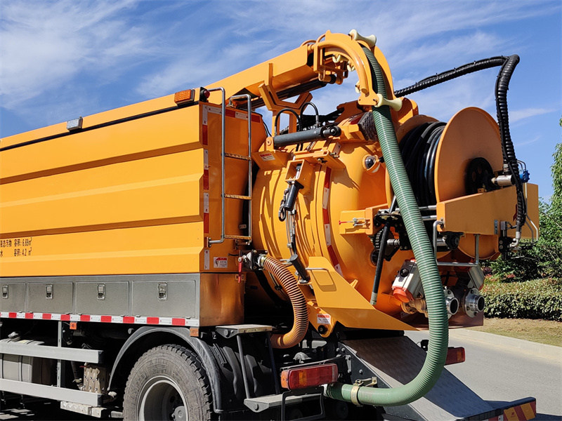 • Катушка для заднего борта: Оснащенная катушкой для очистки под высоким давлением, она позволяет быстро сматывать и разматывать шланг, облегчая операции по очистке.