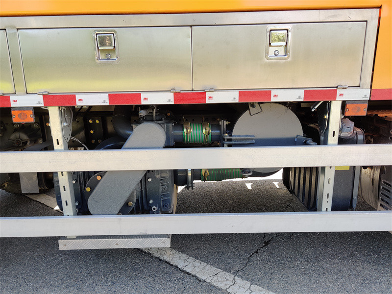 2. Система очистки под высоким давлением: В процессе работы вал отбора мощности шасси приводит в действие насос высокого давления 3N2-SZ, который подает чистую воду под давлением из резервуара и нагнетает ее через сопла катушки для промывки внутренних стенок трубы. Высокоскоростной поток воды создает мощную ударную силу, удаляя стойкие загрязнения.