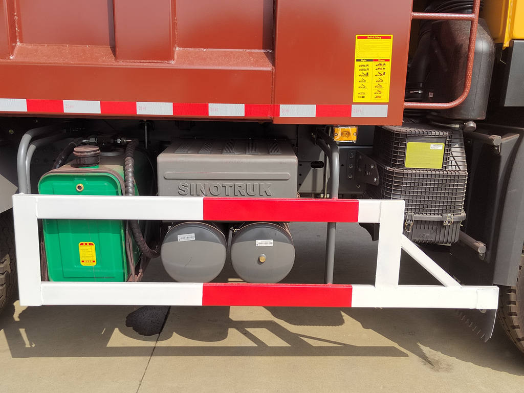 Строительный самосвал Howo состоит в основном из шасси, гидравлической подъемной системы, грузового отсека и системы управления. Грузовой отсек сварен из высокопрочных стальных пластин, шарнирно соединен спереди с рамой, а задняя часть может открываться гидравлически или оснащена автоматическим запирающим крюком для обеспечения герметичности во время транспортировки. Гидравлическая система включает в себя масляный насос, многоступенчатый гидравлический цилиндр, регулирующий клапан и топливный бак. Подъем и опускание грузового отсека управляются джойстиком из кабины.