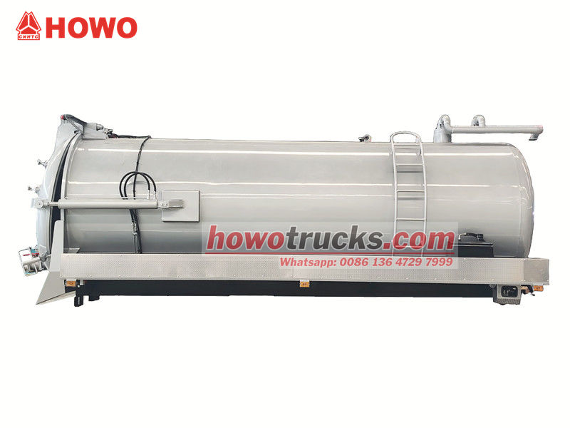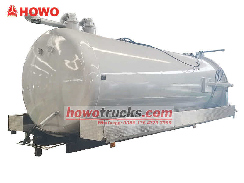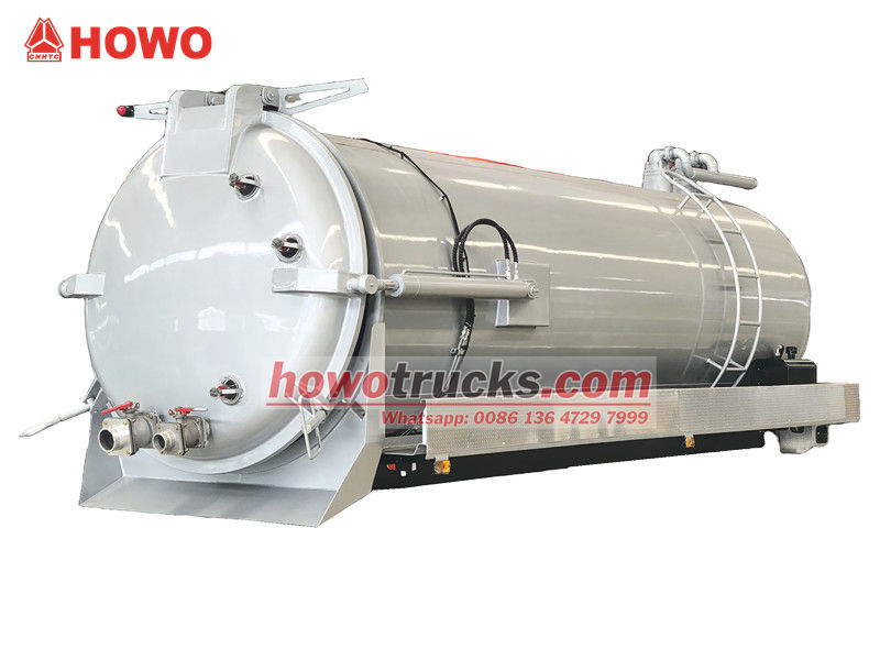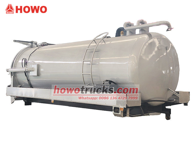 Он верхняя часть корпуса септика объемом 12 куб. м Вакуумный насос с сердечником, соединенный с маслогазовым сепаратором, быстро создает отрицательное давление внутри резервуара. Через износостойкий всасывающий шланг он эффективно откачивает осадок, сточные воды, фекалии и другие вязкие отходы.