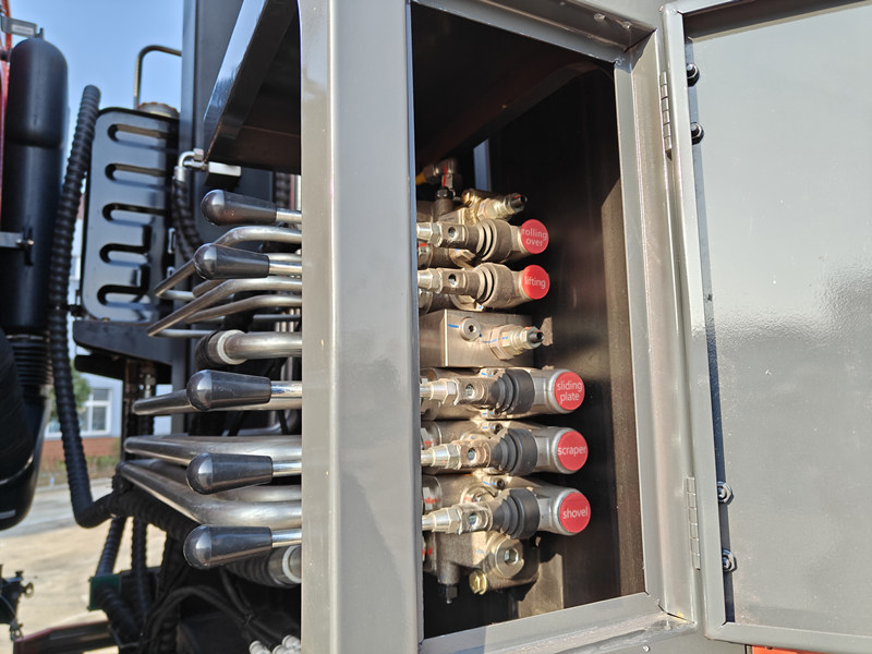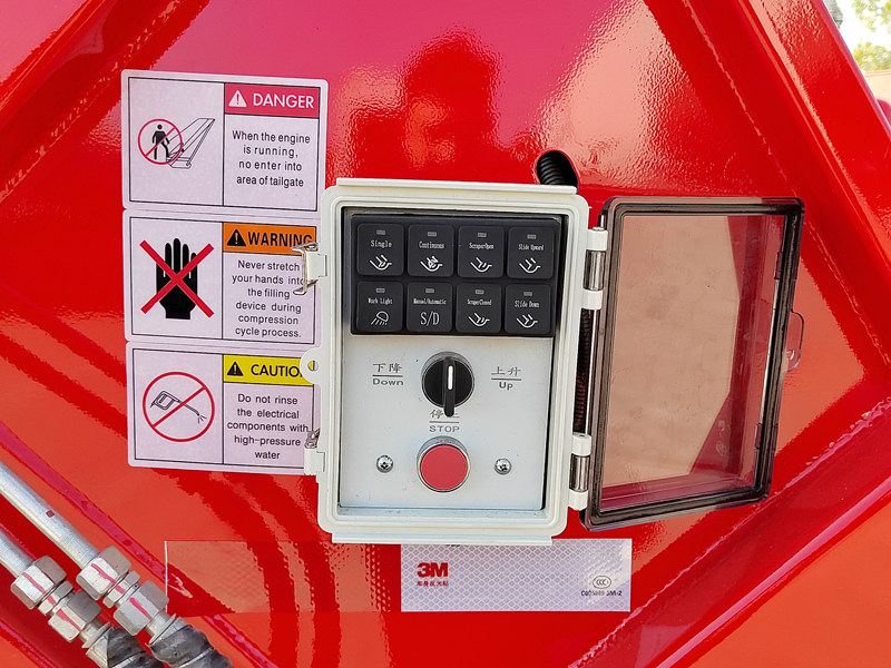 ►Обеспечивается удобство эксплуатации и управления. Блоки управления расположены как в кабине, так и в задней части автомобиля. Блок управления в кабине отвечает за процесс толкания и разгрузки, а также позволяет выбирать режимы работы (автоматический или ручной), в то время как задний блок управления управляет механизмами уплотнения и опрокидывания. Эксплуатация чрезвычайно удобна.
