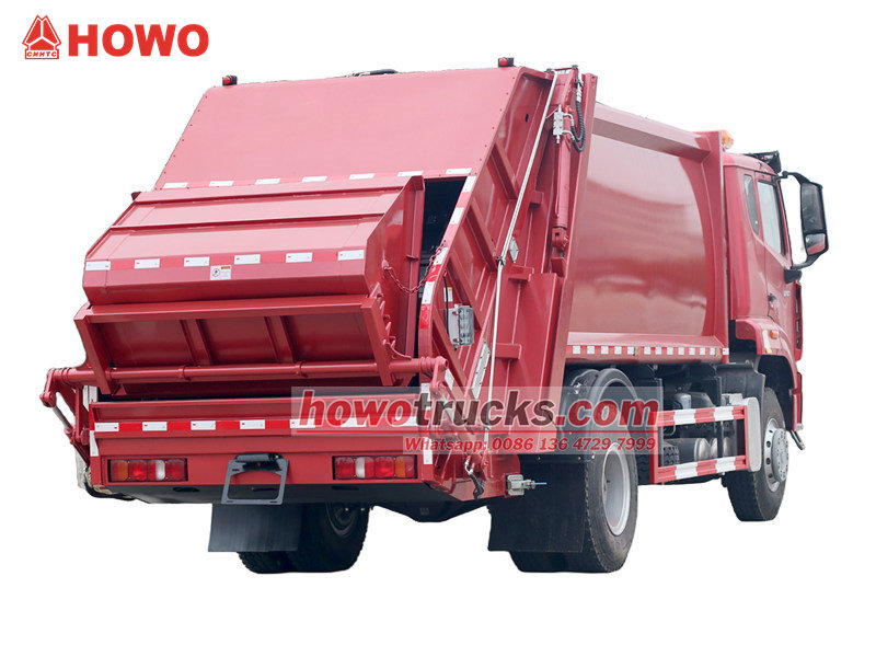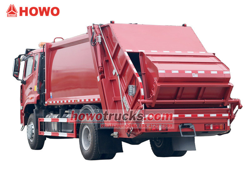 Мусоровоз HOWO с задней загрузкой и прессованием (также называемый мусоровозом HOWO 4x2, мусоровозом HOWO с прессом, мусоровозом HOWO 300 л.с. с задней загрузкой, мусоровозом HOWO 15 куб.м, мусоровозом HOWO 4x2, мусоровозом HOWO 15 куб.м, мусоровозом HOWO с задней загрузкой и прессованием и т. д.)Это новый тип мусоровоза, специально предназначенный для сбора, транспортировки и вывоза мусора.