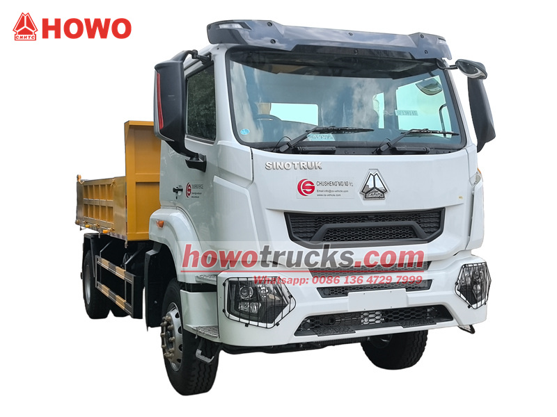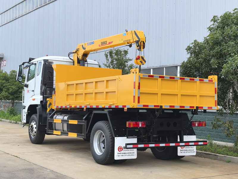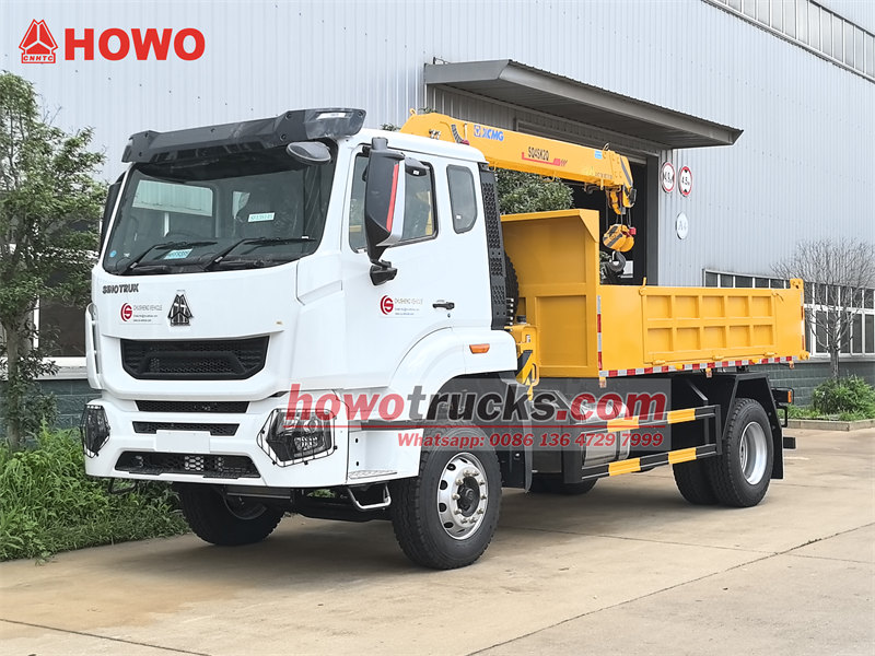 16000Самосвал SINOTRUK HOWO с краном — это многофункциональная тяжелая строительная машина, сочетающая в себе возможности саморазгрузки и подъема грузов. Он состоит из четырех основных компонентов: шасси SIONTRUK повышенной прочности, трехсекционного телескопического крана XCMG SQ4SK2Q, гидравлической системы и самосвального грузового отсека. Оснащенный двигателем Weichai мощностью 220 л.с. и 10-ступенчатой механической коробкой передач, он объединяет функции подъема и разгрузки. В отличие от обычных автокранов, он инновационно использует систему подъема грузового отсека, позволяющую выполнять подъемные операции в радиусе 8,1 метра, а также осуществлять саморазгрузку материалов.