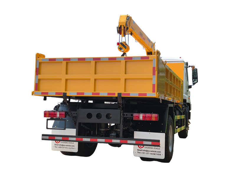 Этот Кран HOWO, установленный на самосвале Подходит для различных сценариев использования, включая строительные площадки, логистические склады и полевые спасательные операции. Его функциональность может быть дополнительно расширена за счет дополнительных приспособлений, таких как грейферы для бревен и подъемные корзины. Кран оснащен высокопрочной U-образной стрелой, обеспечивающей на 5% большую грузоподъемность, чем у отраслевых аналогов. Благодаря широкопролетным опорам и системе защиты от перегрузки он обеспечивает номинальную грузоподъемность 4 тонны и максимальную высоту подъема 10 метров, гарантируя при этом полную безопасность и устойчивость в эксплуатации.